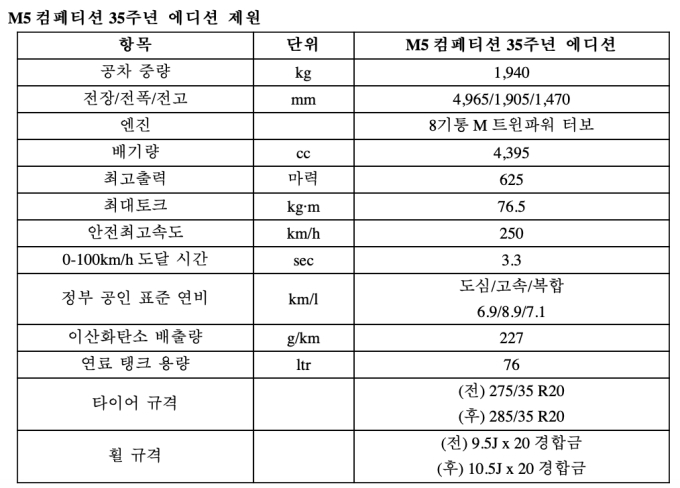 M5 컴페티션 35주년 에디션의 가격은 1억6900만원(부가세 포함)이다. BMW 샵 온라인(