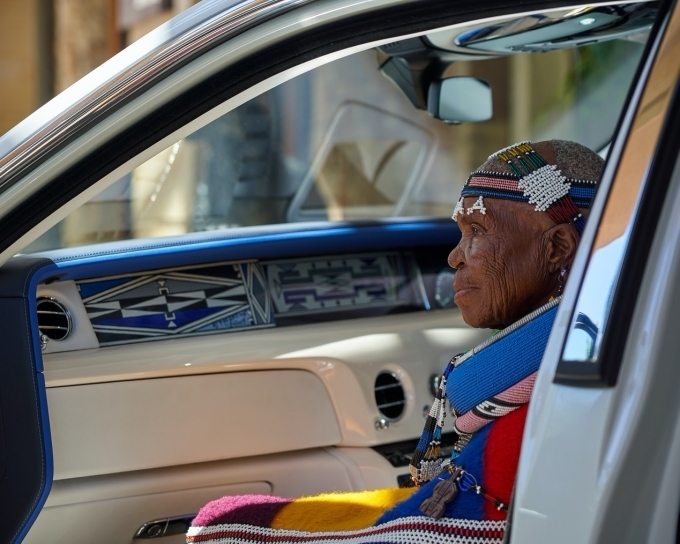 이번 작품은 남아프리카공화국의 소수민족, 은데벨(Ndebele) 부족의 벽화에서 영감을 얻은 것으로, 이 지역 출신인 마흘란구 박사가 선명한 색채감이 돋보이는 기하학적인 마을 전통 문양으로 센터페시아를 화려하게 장식했다. 저명한 예술가가 팬텀 대시보드를 캔버스 삼아 창작 활동을 펼친 것은 이번이 처음이다.