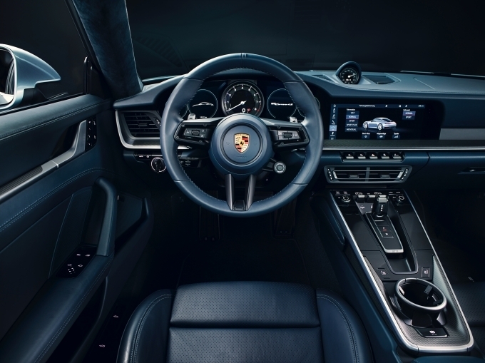 완전히 새로워진 인테리어는 오목한 계기판과 직선 라인이 강조된 대시보드가 특징이다. 오리지널 911과 마찬가지로 새로운 대시보드는 두 개 윙 사이의 전체 너비를 완전히 덮고 있다. 중앙에 위치한 타코미터와 함께 두 개의 얇고, 프레임이 없는 디스플레이는 운전자에게 다양한 정보를 제공하며, 10.9인치의 포르쉐 커뮤니케이션 매니지먼트(PCM) 센터 스크린은 운전에 방해 없이 더욱 신속하게 작동된다.