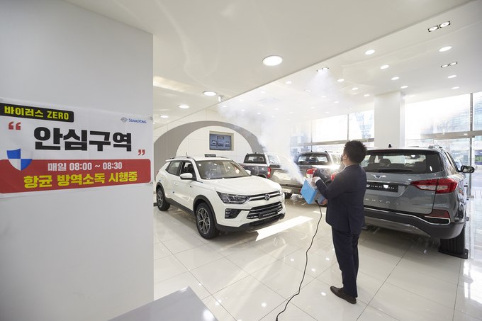 [오토모닝 정영창 기자] 쌍용자동차가 전국 300여개 전시장에 매일 방역소독 실시를 통해 신종 코로나 바이러스 감염증(코로나19) 안심구역을 만들고 있다고 12일 밝혔다.