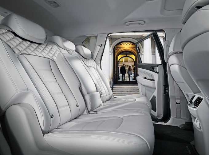 △실키화이트펄 외관 컬러 △최고급 퀼팅 가죽시트가 포함된 스노우베이지 인테리어 △도어 개폐와 연동되어 작동, 어린이나 노약자도 편하고 안전하게 승하차할 수 있는 전동식 사이드 스텝 △엔진 시동과 함께 대시보드에서 솟아오르는 플로팅(floating) 무드 스피커 △적재공간의 활용성을 높여 주고 아웃도어에서도 유용한 테일게이트 LED 램프가 기본 적용된다.