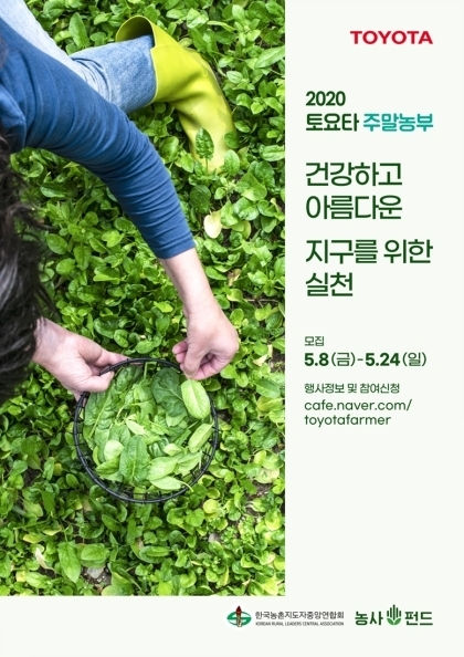 2020 토요타 주말농부는 오는 24일까지 토요타 주말농부 카페를 통해 모집하며 자연친화적이고 건강한 삶을 추구하는 사람이라면 누구나 신청할 수 있다.