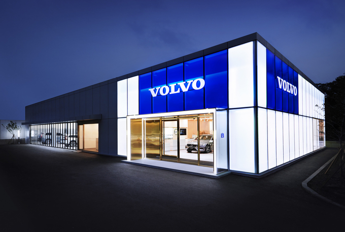 제주 전시장은 대지 1399㎡, 연면적 611.55㎡ 규모로 신설됐으며, 북유럽 감성의 '볼보 리테일 익스피어리언스' 콘셉트를 적용해 야간에는 스웨덴의 오로라를 형상화한 조명 아트를 선보인다. 실내는 원목소재의 인테리어와 따뜻한 조명을 사용해 북유럽 감성의 차별화된 디자인과 편안하고 안락한 분위기를 연출했다.