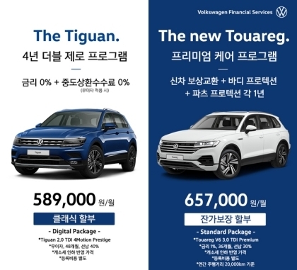 이번 프로모션은 ‘투아렉 프리미엄, 1년 프리미엄 케어 프로그램’과 ‘티구안 4모션, 4년 더블 제로 프로그램’으로 구성된다.