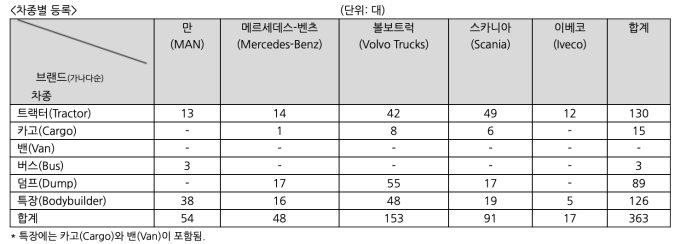 4월 수입 상용차 363대 신규등록…볼보트럭 판매 1위