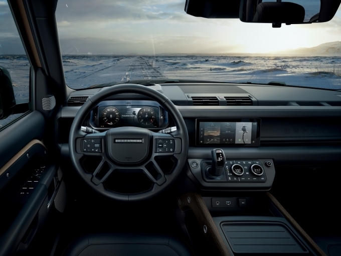 랜드로버는 사용 목적과 일상의 편의성을 충실히 반영한 설계, 다양한 액세서리와의 결합성, 내구성, 견고한 마감 재질, 특별한 디자인 등을 핵심 가치로 두고 실용적이고 개성 넘치는 인테리어 디자인을 완성했다. 인테리어에서 가장 대표적인 특징은 앞좌석 센터페시아를 가로지르는 ‘마그네슘 합금 크로스 카 빔’을 꼽을 수 있다.
