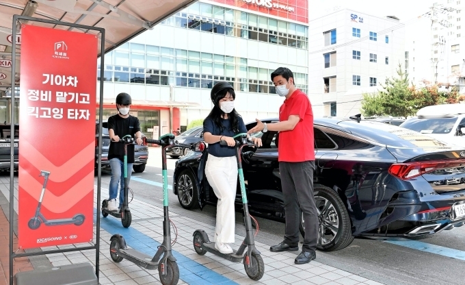 [오토모닝 정영창 기자] 기아자동차가 직영서비스센터에서 공유형 전동킥보드 서비스를 선보인다.