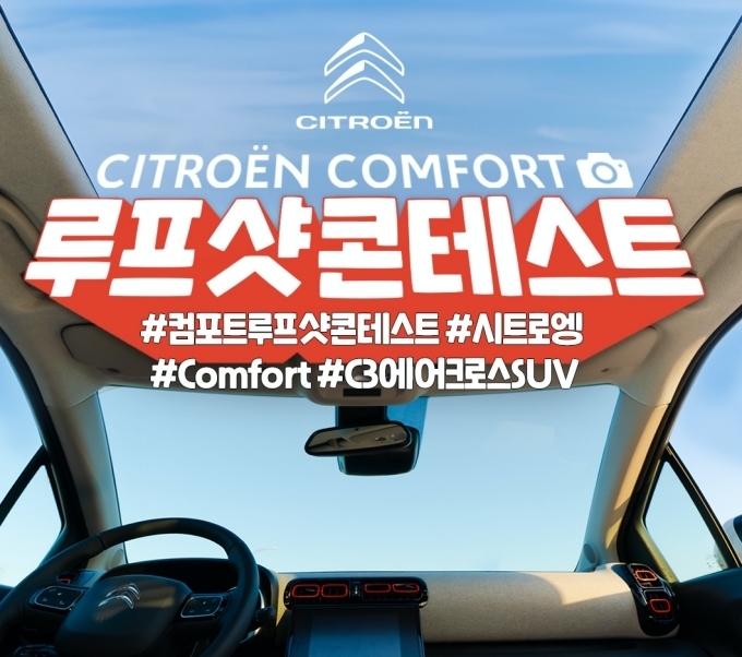 [오토모닝 정영창 기자] 시트로엥이 17일부터 31일까지 차량 선루프를 통해 보이는 풍경사진을 찍어 소셜미디어채널(SNS)에 업로드한 고객을 대상으로 선물을 증정하는 '시트로엥 컴포트 루프샷 콘테스트'를 진행한다.