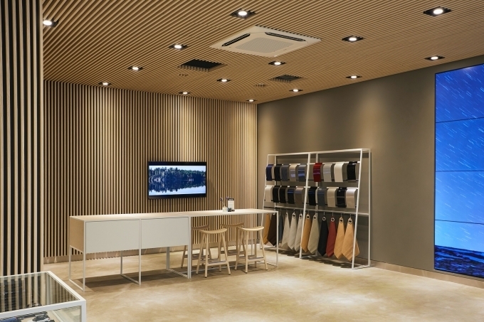 볼보 하남 전시장은 기존 ‘볼보 리테일 익스피어리언스(Volvo Retail Experience, VRE)’ 콘셉트에서 나아가 전시장이 위치한 공간 특성을 반영, 도심형 라이프스타일을 즐기고 체험하는 밀레니어 세대를 겨냥한 컨템포러리 콘셉트로 조성됐다. 고객 라운지 및 상담 공간은 애쉬우드 마감으로 북유럽 특유의 따스한 느낌을, 차량 전시 공간은 콘크리트 플로우 처리로 차량에 온전히 집중할 수 있는 분위기를 조성했다.