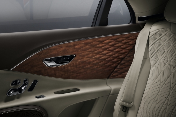 신형 플라잉스퍼 뒷좌석도어 트림과 쿼터 패널에 적용된 3D 우드 패널은 전부 미국산 호두나무 또는 체리나무 원목으로 만들어졌으며, 벤틀리 뮬리너만의 전통적인 수작업 기술과 최신 기술을 조화롭게 적용해 제작되었다.