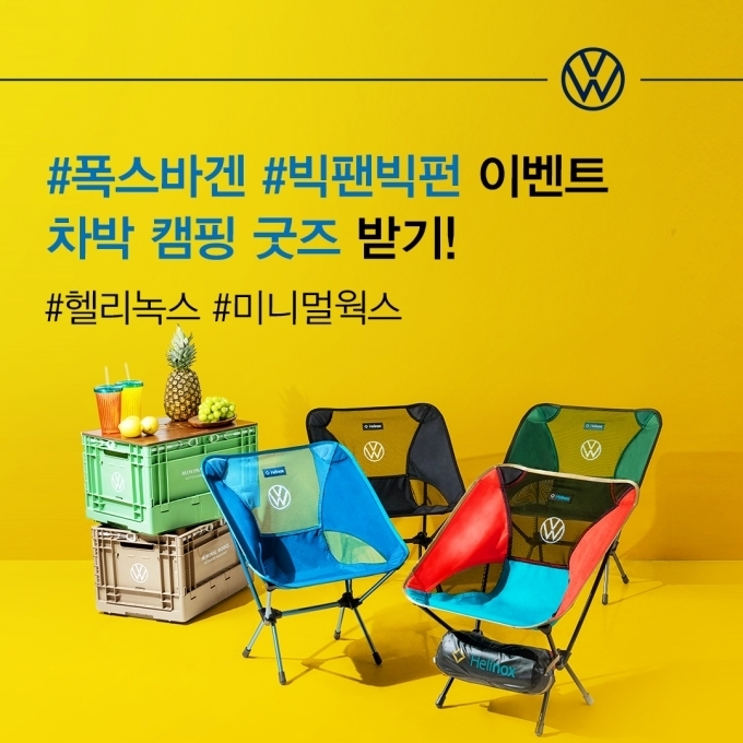 또한 매년 큰 관심을 얻고 있는 ‘빅팬 캠페인 인스타그램 해시태그 이벤트’에서는 최근 차박 트렌드를 반영하여 폭스바겐 로고가 새겨진 헬리녹스 체어원, 미니멀웍스 폴딩 박스 등 다양한 브랜드 콜라보레이션 차박 굿즈를 준비했다.