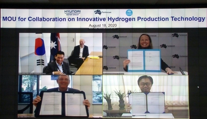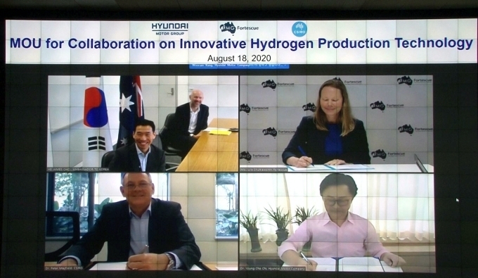현대자동차는 호주 최대의 종합 연구기관인 호주연방과학산업연구기구(Commonwealth Scientific and Industrial Research Organisation, 이하 CSIRO), 세계 4위의 철광석 생산업체 포테스큐(Fortescue Metal Group Ltd, FMG)와 혁신적 수소 생산 기술 개발을 위한 MOU를 체결했다고 20일 밝혔다.