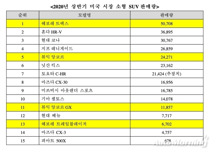 [오토모닝 정영창 기자] 한국지엠이 국내에서 생산해 수출하고 있는 쉐보레 트랙스와 트레일블레이저가 올 상반기 미국 시장에서 압도적인 판매량을 기록하며 미국 소형SUV 시장을 리드하고 있다.
