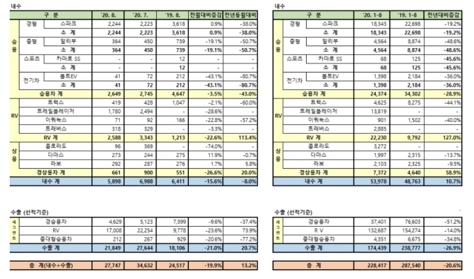 [오토모닝 정영창 기자] 한국지엠이 8월 한달간 내수 5898대, 수출 2만1849대로 총 2만7747대를 판매했다고 1일 밝혔다.