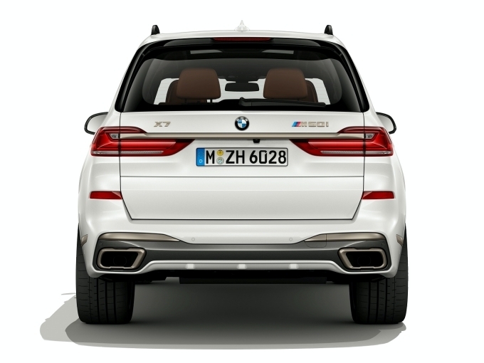 세륨 그레이 컬러가 적용된 M 퍼포먼스 전용 키드니 그릴과 사이드 미러캡, 머플러 팁, 그리고 22인치 V 스포크 755 M 휠 등 외관 곳곳에 반영된 M 퍼포먼스 모델 고유의 디자인 요소는 뉴 X7 M50i의 역동적인 성능을 더욱 강조한다.