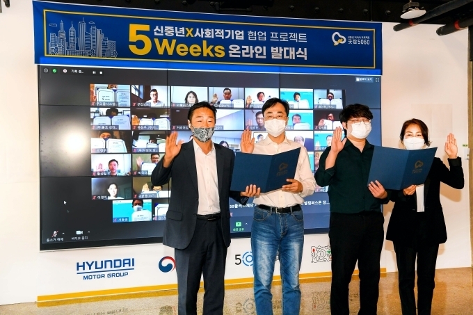 현대자동차그룹은 신중년 커리어 프로젝트 ‘굿잡 5060’의 교육을 수료한 참가자들에게 협업 기회를 제공하기 위해 런칭한 신규 프로그램인 ‘5 Weeks’의 온라인 발대식을 17일 개최했다고 밝혔다.