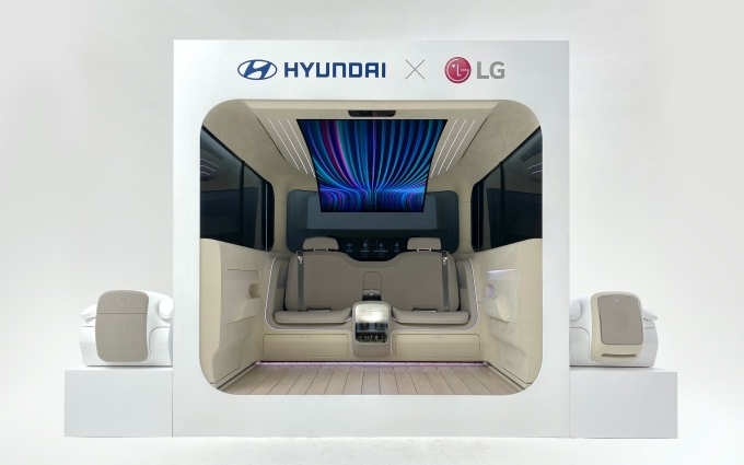 LG전자와 협업으로 제작된 '아이오닉 콘셉트 캐빈'에는 △슈즈케어기 △커피머신 △의류케어기 등 고객 경험 구성품이 탑재됐으며, 차량 천장에 설치된 △플렉서블 올레드 디스플레이를 통해 어떠한 자세에서도 편안하게 콘텐츠를 즐길 수 있도록 디자인 됐다.