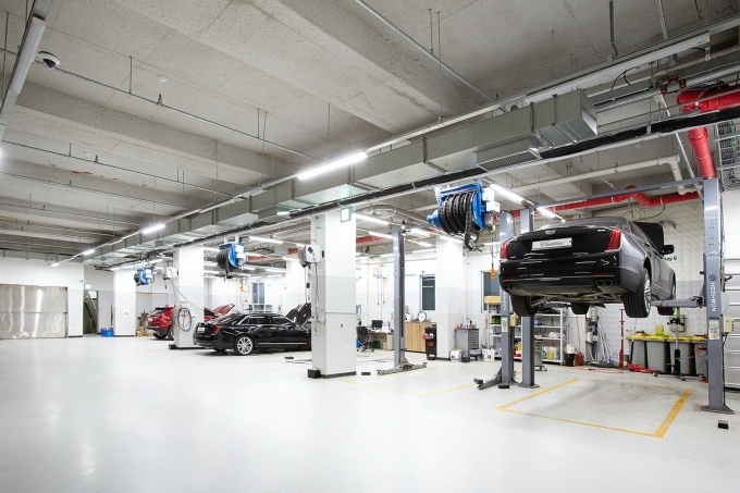 지하 2층, 지상 4층으로 연면적 1728㎡ 규모로 마련된 서초 서비스센터는 7개의 일반 수리 리프트와 2개의 도장부스를 갖춰 일반수리 기준 월 840대, 사고수리 월 120대 수준의 우수한 A/S 수행 능력을 완비했다. 또한 3개의 고객 상담 부스와 2층 전체에 마련된 여유로운 고객 대기실은 서초 서비스센터를 찾는 고객들의 만족도를 높이는데 기여할 것이다.