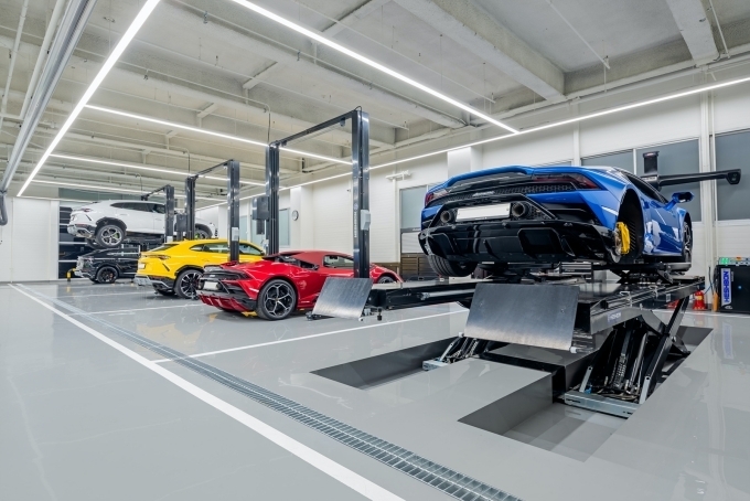 새롭게 개설된 대규모 서비스센터는 총 10개의 워크 스테이션과 함께 람보르기니 전용 진단기 및 공인 얼라인먼트 계측장비 등 최신 장비들을 완벽하게 갖췄다. 특히 1층에 사전 점검 베이를 설치해 고객들이 서비스 어드바이저와 함께 차량을 직접 확인하면서 진단을 받을 수 있도록 했다.