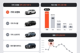 [오토모닝 정영창 기자] 모빌리티 서비스 전문 기업 오토핸즈의 자회사인 실시간 신차 견적 비교 플랫폼 모딜카는 2025년 한 해 동안 집계된 신차 견적 산출 데이터를 분석한 결과, 전체 견적의 약 80%가 국산차 브랜드에 집중된 가운데, 기아 브랜드를 중심으로 한 패밀리카 및 SUV 차종이 주요 선택지로 나타났다고 30일 밝혔다. 또한 신차 견적 산출은 봄과 여름 휴가철을 앞둔 시기에 증가한 반면, 연말에는 감소하는 등 계절에 따른 수요 변동도 뚜렷하게 나타났다. 지난해 모딜카의 총 견적 산출량 분석 결과, 제조사별 전체 견적 비중에서는 기아·현대차·제네시스 3개 브랜드가 전체 견적 산출량의 79.5%를 차지하며 시장을 주도했다. 이 가운데 기아가 39.7%로 1위를 기록했으며, 현대차(28.5%)와 제네시스(11.2%)가 뒤를 이었다. 차종별로는 기아 쏘렌토가 6.9%로 1위를 기록했으며, 이어 기아 카니발(6.5%)과 기아 스포티지(6.4%)가 각각 2위와 3위에 올랐다. 이들 세 모델은 전체 견적 산출량의 19.8%를 차지하며, 패밀리카 수요를 기반으로 한 기아 SUV 및 RV 모델의 강세가 두드러졌다. 현대차 모델 가운데서는 지난해 1월 신차 출시 효