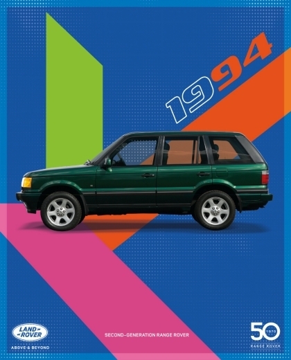 P38A로 알려진 2세대 레인지로버 모델은 1994년에 출시됐다. 이때 적용된 실루엣, 플로팅 루프, 클램쉘 보닛, 실용적인 스플릿 테일게이트와 매끄럽게 연결된 허리선은 한 눈에 알아볼 수 있는 레인지로버의 아이코닉한 디자인 특징으로 현재까지 이어지고 있다.