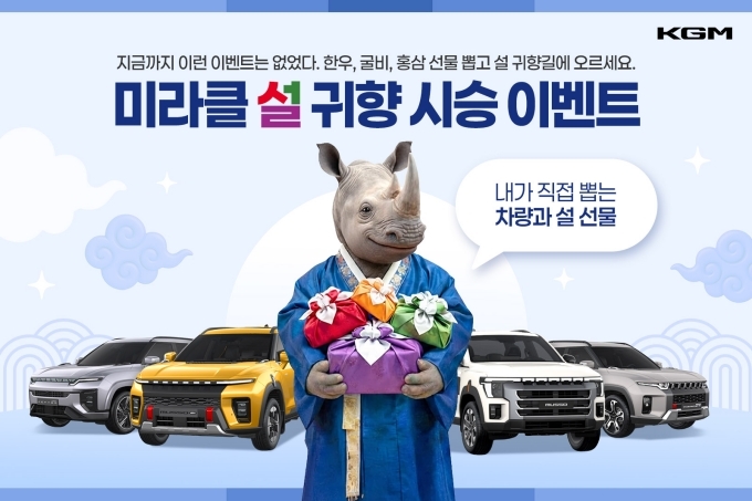 [오토모닝 정영창 기자] KG 모빌리티(KGM)가 다가오는 설 명절을 맞아 귀성∙귀향길 차량을 제공하는 ‘미라클 설 귀향 시승 이벤트’를 실시한다고 26일 밝혔다.
