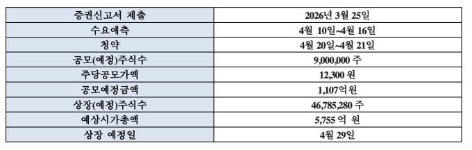 공모 청약은 20~21일 진행될 예정이며, 대표 주관사는 KB증권·삼성증권이, 공동 주관사는 대신증권·하나증권이 맡았다.