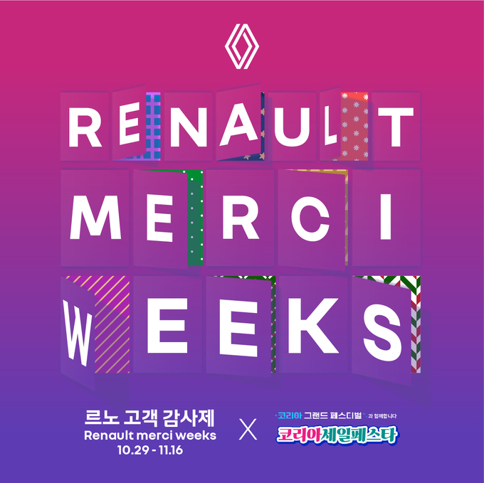 [오토모닝 정영창 기자] 르노코리아가 올 연말까지 고객 감사제 ‘르노 메르시 위크(Renault Merci Week)’를 진행하고 매주 고객들에게 풍성한 선물을 증정한다.