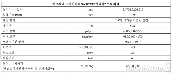 [오토모닝 정영창 기자] 메르세데스-벤츠 코리아는 전설적인 ‘마이바흐 제플린에 최초 탑재된 V12 엔진의 전통을 기념하는 한정판 모델 ‘메르세데스-마이바흐 V12 에디션’을 출시한다.