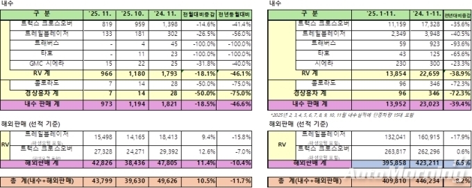 [오토모닝 정영창 기자] GM 한국사업장이 11월 한 달 동안 총 4만3799대(내수 973대, 수출 4만2826대)를 판매했다고 1일 밝혔다. 이는 전년동기보다 내수는 46.6%, 수출은 10.4% 줄어들어 전체적으로 11.7% 감소한 수치다.