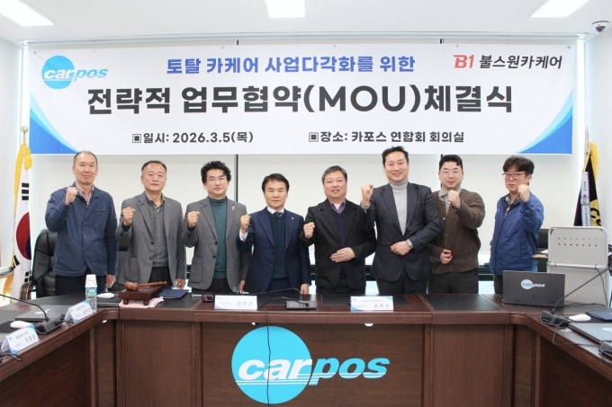 지난 5일 충북 청주 카포스 연합회 대회의실에서 열린 MOU 체결식에는 B1불스원카케어 김옥수 대표이사와 카포스 강순근 연합회장을 비롯한 양사 관계자가 참석했다.