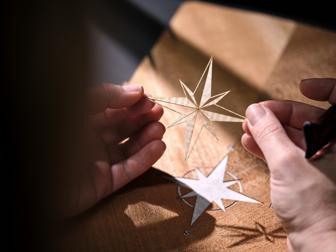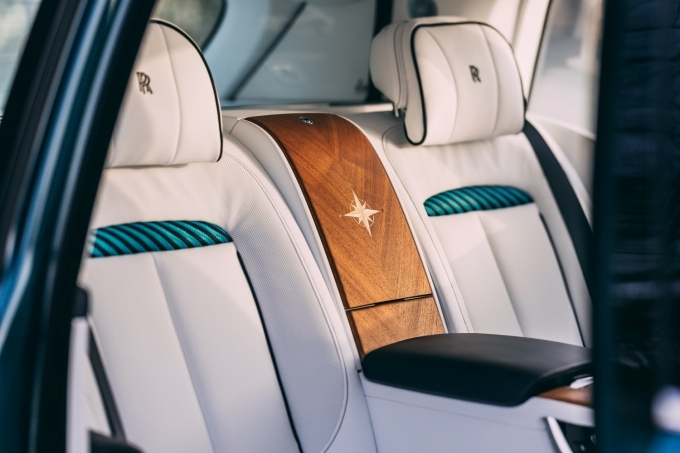뒷좌석 사이를 나누는 ‘워터폴(Waterfall)’에는 마케트리(Marquetry) 기법으로 구현한 나침반 모티프가 적용됐다. 이 디자인은 시카모어, 티크, 애쉬, 블랙 볼리바르 등 다양한 색과 결의 베니어를 40여 개의 개별 조각으로 정밀하게 절단한 뒤 손수 조립해 완성됐다.