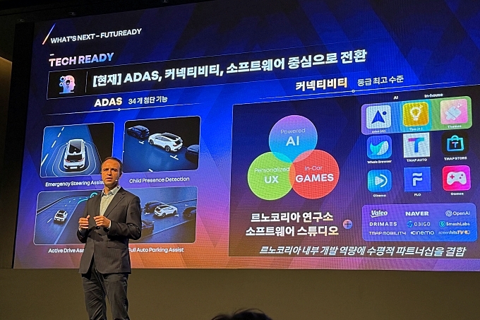 르노코리아가 이날 발표한 핵심 내용은 △전동화 가속 △ADAS/커넥티비티·소프트웨어 기반 AIDV 전환 △2년 내 개발 등 운영 단순화 △개방형 생태계·인재/대학 협업 등이다.
