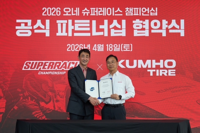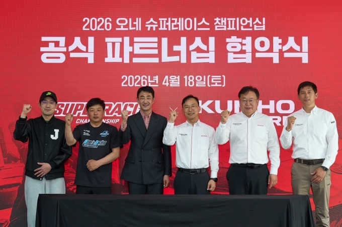 [오토모닝 정영창 기자] 금호타이어가 지난 18일 국내 최고 권위의 모터스포츠 대회인 ‘2026 오네(O-NE) 슈퍼레이스 챔피언십’ 토요타 가주 레이싱 6000 클래스 참가팀 후원을 위해 슈퍼레이스와 후원 조인식을 체결했다고 밝혔다.