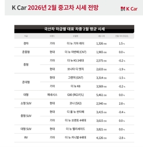 [오토모닝 정영창 기자] 수출 수요의 과열이 진정되면서 중고차 시세가 안정 국면을 맞이하고 있다. 국내 최대 직영중고차 플랫폼 기업 K Car(케이카)는 국내 중고차 시장에서 유통되는 출시 10년 이내 740여개 모델을 대상으로 평균 시세를 분석한 결과, 국산 SUV의 평균 시세가 전월 대비 0.8% 하락할 것이라고 30일 전망했다. 국산 SUV는 내수 수요는 물론 수출 시장에서도 큰 인기를 끌고 있기 때문에 기아 쏘렌토, 스포티지 등 일부 모델은 시간이 지날수록 감가가 진행되는 중고차의 일반적인 특성을 거스르며 시세가 오히려 상승하는 모습을 올 하반기 동안 보여왔다. 하지만 최근 러시아, 시리아 등 한국산 중고차 주요 수입 국가들이 각종 규제 강화 정책을 시행하면서 연말 들어 수출 수요가 감소해 왔고, 이에 국내 중고차 시세를 과열시키던 요인이 해소되면서 시세가 안정화되고 있는 것으로 풀이된다. 주요 SUV 모델들의 시세를 살펴보면 △기아 쏘렌토 4세대 0.0%(유지) △기아 쏘렌토 4세대 하이브리드 -1.4% △기아 디 올 뉴 스포티지 -0.5% △기아 디 올 뉴 스포티지 하이브리드 -0.9% △현대 더 뉴 팰리세이드 -1.3% 등으로 예상된다. 특히 기